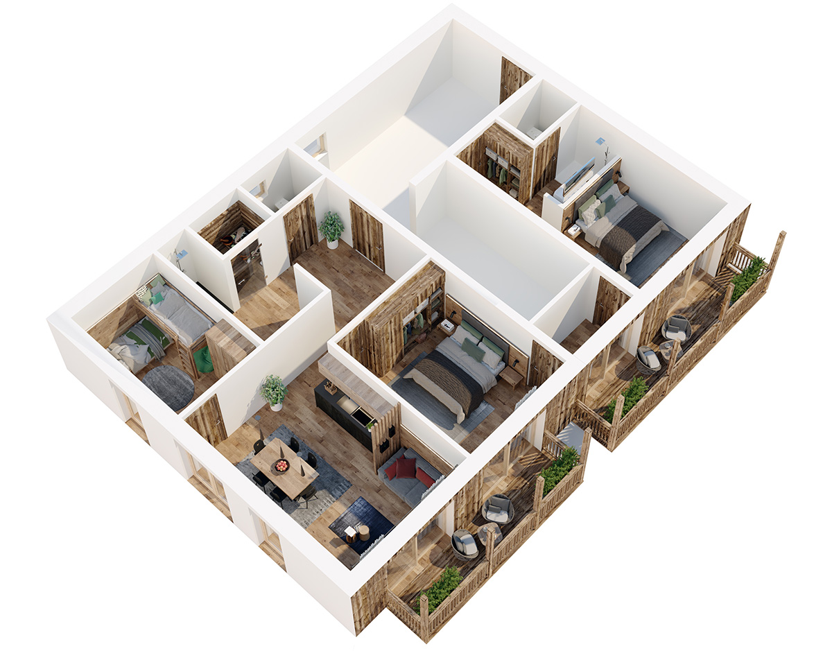 Viel Freiraum, Licht und Luft in unserem Apartment mit zusätzlichem Zimmer und zwei Balkonen.