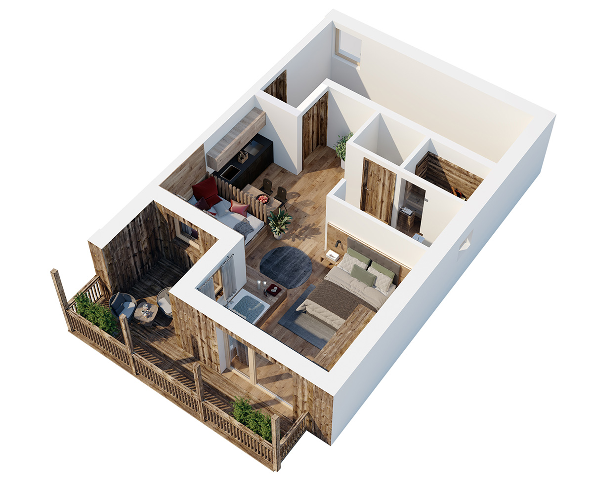 Alle unsere Chalets haben eine private Sauna und Whirlpool. Sie sind mit gemütlichen Holzböden ausgestattet, und auch die Innenausstattung sorgt mit viel sonnenverbranntem Altholz für eine warme, kuschelige Umgebung und ein angenehmes Wohlgefühl. Das pure Urlaubsglück!